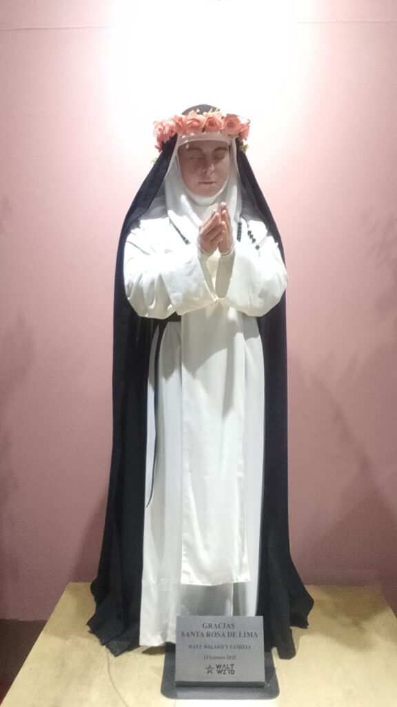 El Museo del Convento de Santo Domingo de Lima presentó este sábado la escultura hiperrealista de Santa Rosa de Lima en actitud orante, una obra creada por el artista peruano Walter Huamán, conocido como Walt Wizard.